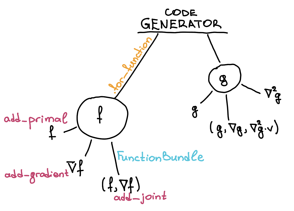 add_primal()add_gradient()add_jacobian()add_vjp()add_joint(FunctionBundle().add_f().add_jf(wrt=0))add_joint(FunctionBundle().add_f().add_hvp(wrt=0))add_joint(FunctionBundle().add_f().add_jf(wrt=0).add_hvp(wrt=0))add_hessian()add_hvp()